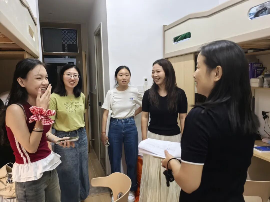 在走访过程中,老师们仔细查看寝室设施,叮嘱同学们要注意用电安全,保持寝室整洁。还鼓励新生们尽快融入老员工活,与室友友好相处,相互帮助。一句句贴心的话语,一个个温暖的笑容,让新生和家长们深深感受到了学院的关怀。
