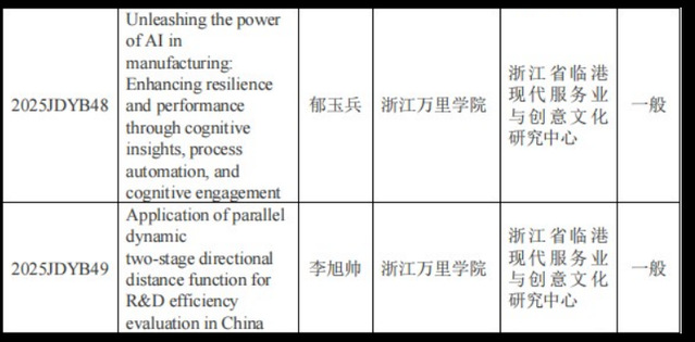 8月18日,浙江省哲学社会科学规划办公布了2025年度省哲学社会科学重点研究基地课题立项名单,公司郁玉兵教授、李旭帅副教授申报的课题获得一般项目立项。
