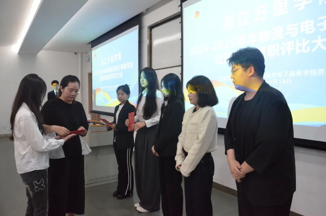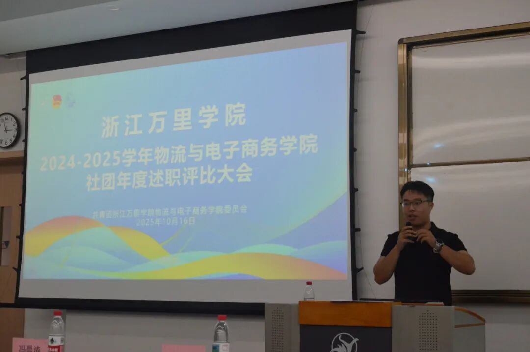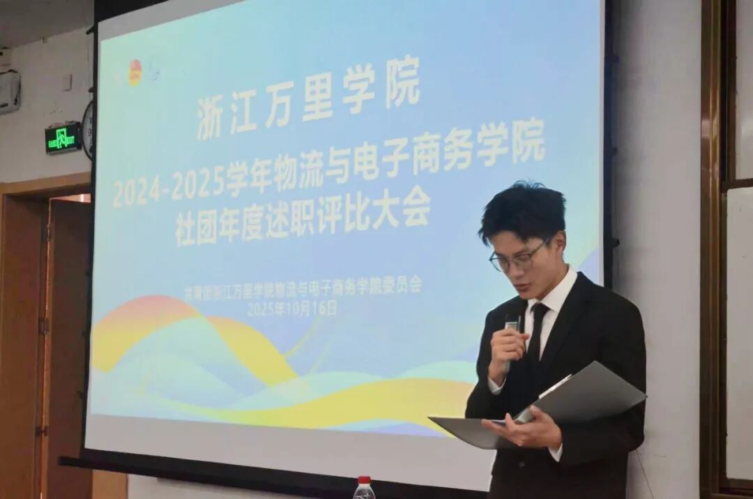 12个社团依次登台,以PPT汇报的形式,全面展示学年工作成果。从活动策划、执行细节到成果落地,各社团负责人用数据、图片与故事,生动呈现了一年来的努力与收获。 专业实践类社团有电子商务协会、物流与供应链协会、职业经理人协会、万里云直播社、社会调查研究会。他们聚焦产教融合,依托物流仿真实验室、电商运营实训平台等载体,通过企业项目对接、学科竞赛备赛等方式,推动专业知识向实践能力转化,助力学子夯实职业素养根基。 文化生活类社团有国学社、心理协会、演辩社、知行合一社。他们深耕精神文化建设,以读书分享会、传统文化工作坊、艺术创作沙龙等形式,搭建多元文化交流平台,在经典品读与创意实践中,丰富学子精神世界,厚植人文素养。 志愿公益类社团有鸿志社、青年志愿者协会、微蚁社。他们立足社会服务,常态化开展社区便民服务、乡村教育帮扶、校园公益倡导等活动,引导学子走出校园、扎根基层,以实际行动践行青年社会责任,传递青春正能量。 汇报环节结束后,大会进入庄重的聘书颁发环节。qy球友会体育团委常委、办公室主任汪源老师为上一学年在社团工作中表现突出的负责人颁发聘书,以此感谢他们过去一年的辛勤付出——从活动筹备到日常管理,正是他们的坚守与创新,让社团成为同学们成长的“第二课堂”。这份聘书不仅是一份荣誉,更是一份责任的传承,激励着新一届社团骨干接续奋斗,为社团发展注入新动能。 大会最后,qy球友会官网团委负责老师冯晨涛老师发表总结讲话。他首先对12个社团的年度工作给予高度肯定,赞扬了同学们在社团活动中展现出的创造力、执行力与凝聚力。 同时,他也对社团未来发展提出殷切期望:希望各社团能进一步结合学院专业特色,打造更具影响力的品牌活动。要始终以服务同学成长为核心,让社团成为同学们提升能力、拓展视野的重要平台,更要加强社团间的联动合作,形成“1+1>2”的发展合力,共同为学院的校园文化建设贡献力量。