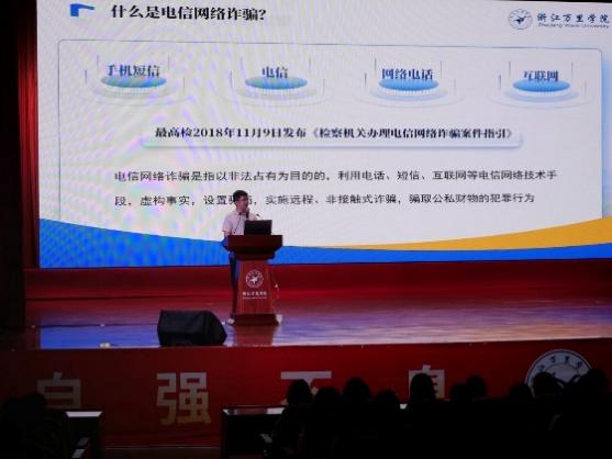 用数据敲响警钟,用案例拆解骗局!10月21日晚,校安全保卫部办公室主任楼宇以实际数据和真实案件为例为公司学子解构骗术细节,夯实安全基础。楼宇以真实安全数据开场,瞬间拉满危机意识,随后深度聚焦新型高级骗术,在关键时间节点上传授“避坑”秘籍,助力同学们筑牢反诈防骗的“思想防火墙”。