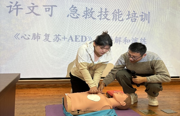 为全面提升师生应急救护能力,11月10日,公司特邀校医疗保健中心许文可医生为公司安全员进行急救知识与技能专项培训。培训内容紧扣校园生活实际,系统讲解了急救的四个关键步骤:判断准备、心脏按压、人工呼吸及AED使用。通过“理论讲解+模拟实操”的模式,员工在许医生指导下进行了动手练习,有效掌握了初级生命支持的基本要领,显著增强了在面对突发事件时的自救互救信心与能力。